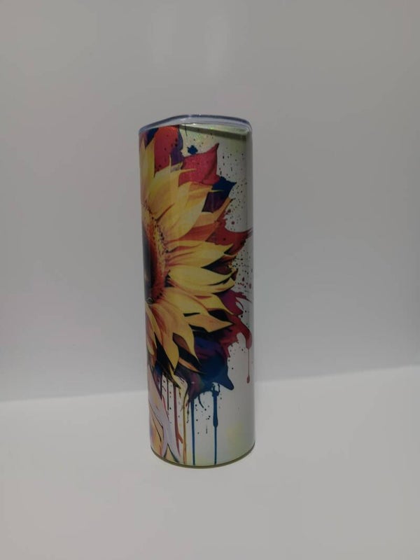 This vibrant Sunflower tumbler is crafted from a durable, double wall, stainless steel. Its cheerful sunflower design, coupled with a ;eak-proof lid & convenient straw, makes it the perfect companion for a sunny day or a busy commute.